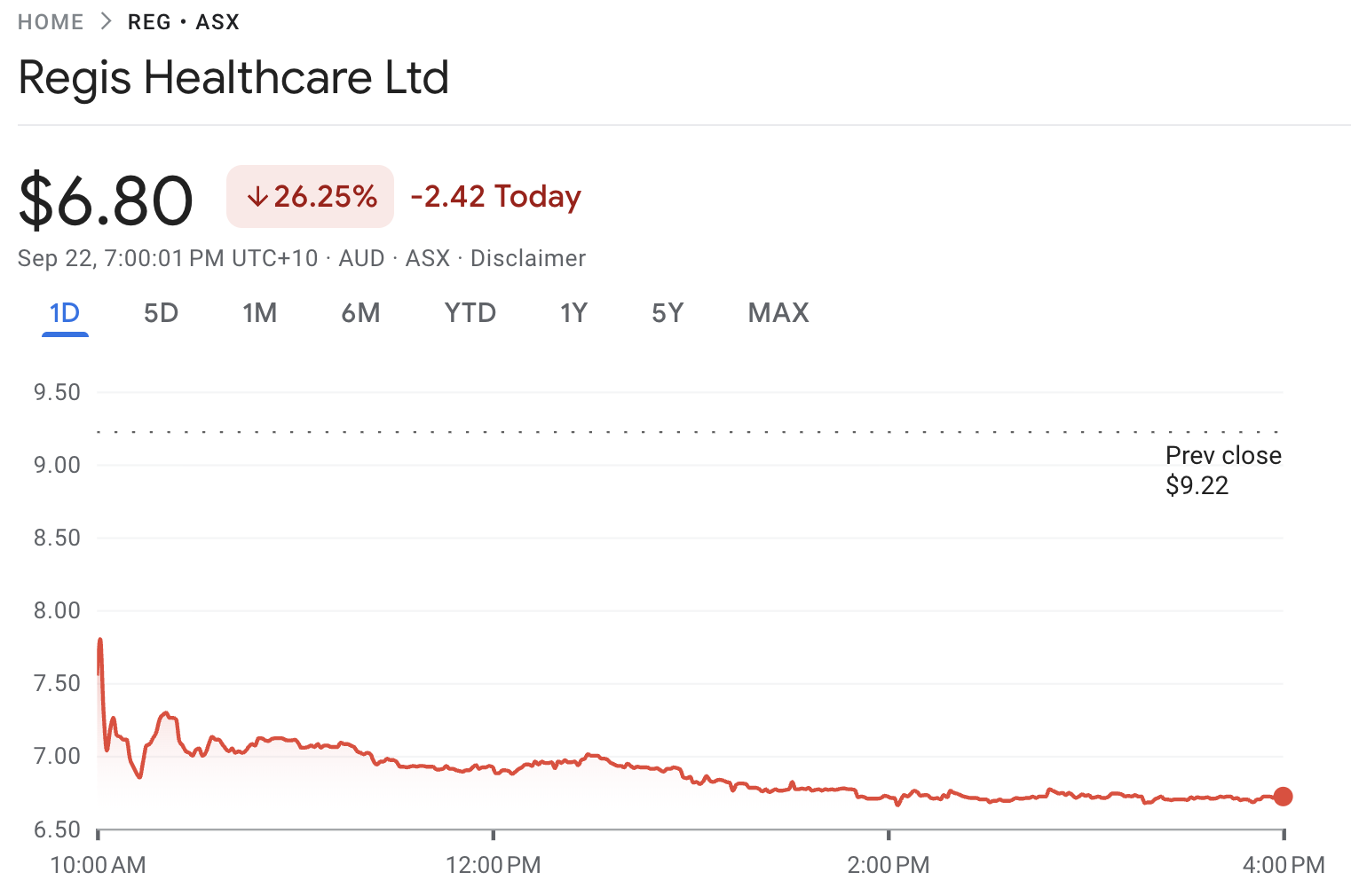 Shares in Regis Healthcare (ASX: REG) tumbled 26% to $6.80 at the close of trading today, after the aged care operator warned that recently announced government funding changes would fall short of its expectations, tightening margins in the face of rising wage pressures. Despite the fall, the stock remains up over the past 12 months.